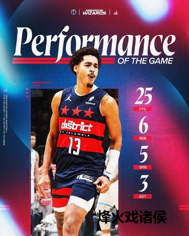 普尔终末时候要津三分率队取胜,奇才获取本赛季第5场得手,5胜23负继续排行东部倒数第一。