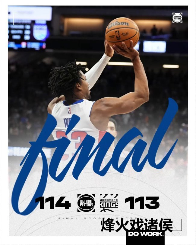 国王朝上14分插足临了一节,活塞小节连中三分追上比分,艾维关节技术3+1制胜。